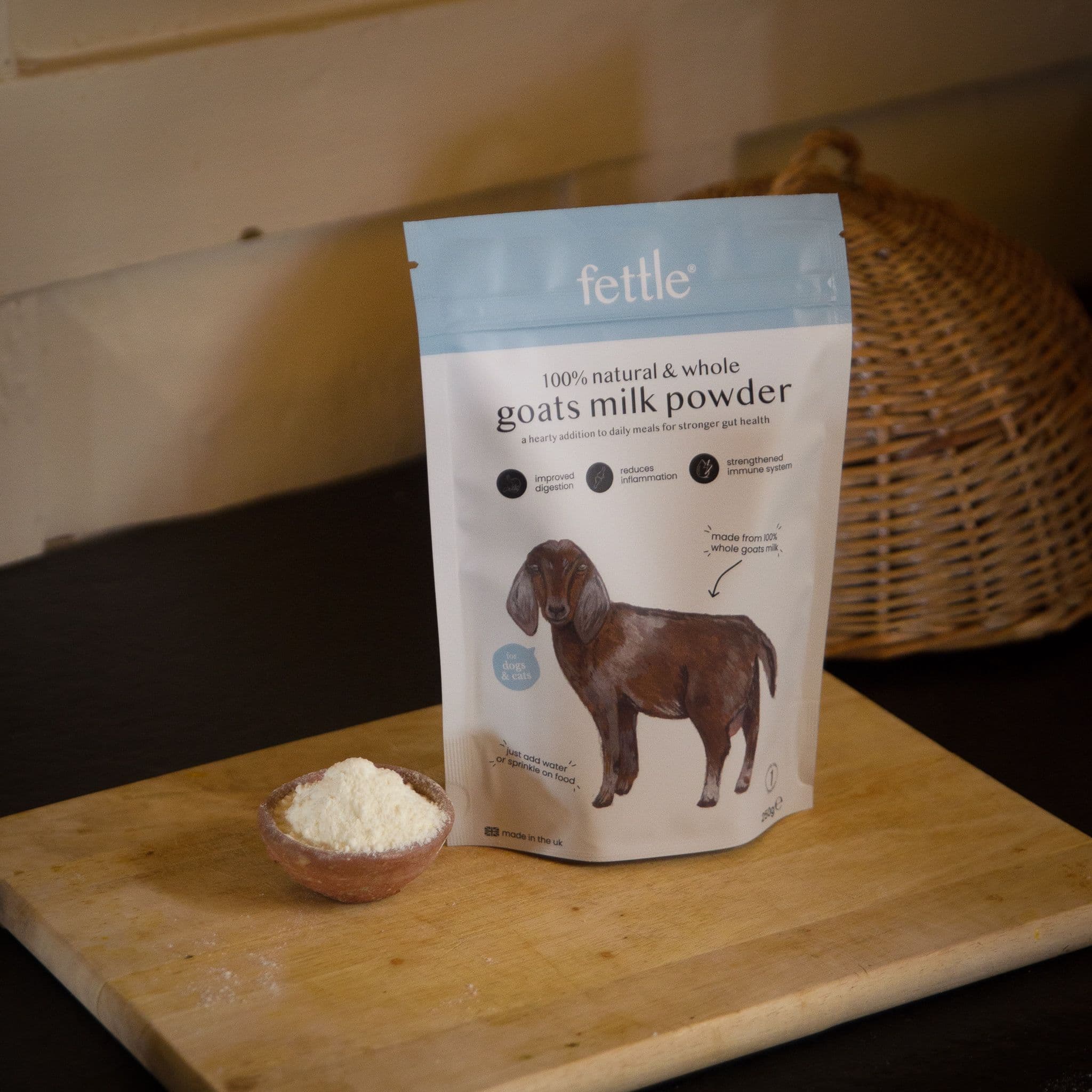 - As a Drink: Mix 1 tbsp of powder with 1 cup of warm water to create 235ml of reconstituted goat's milk. Use 55ml of liquid per 10kg body weight.