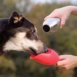 Simply pour the water from the bottle into the lid for the dog to drink. Pour any unused water back into the bottle.