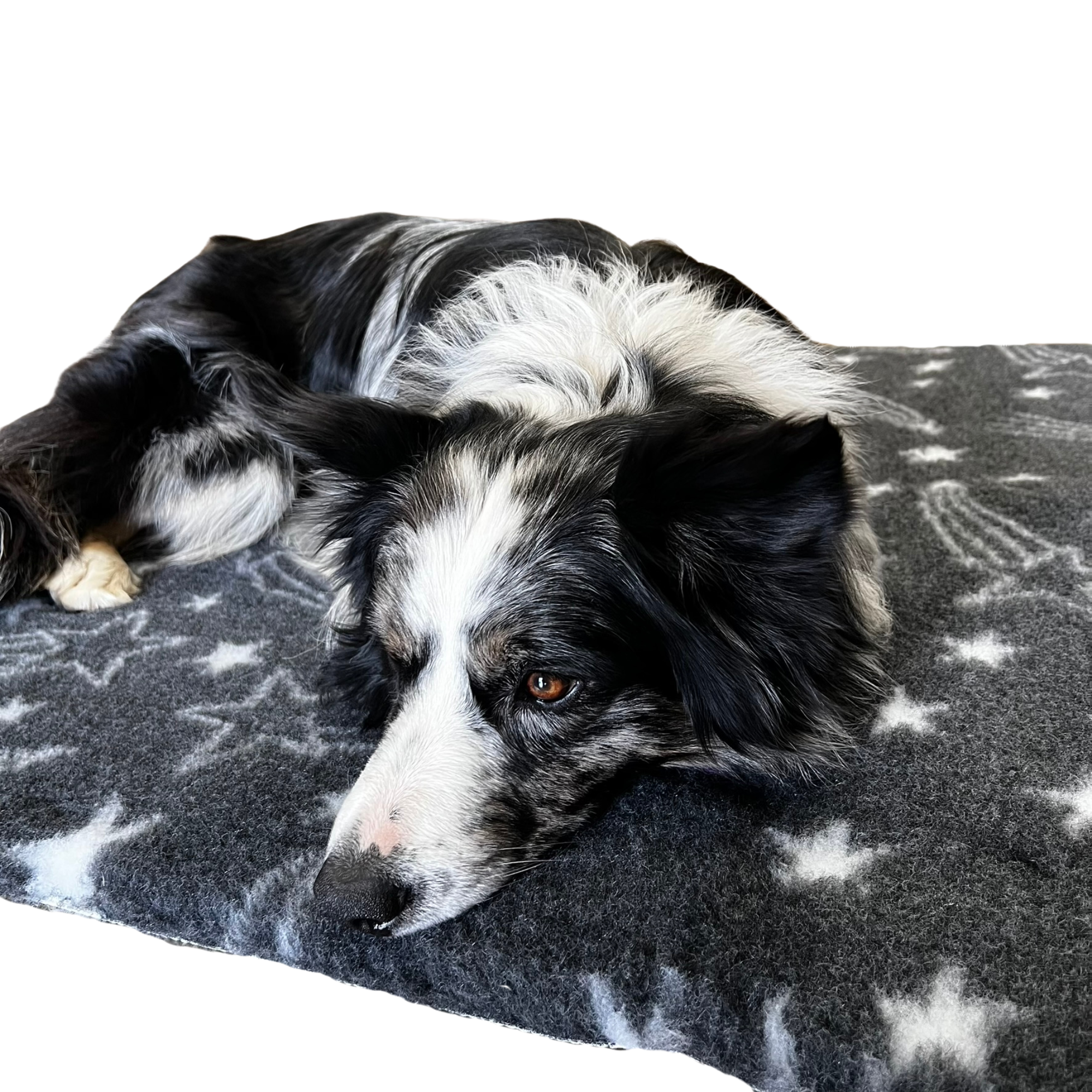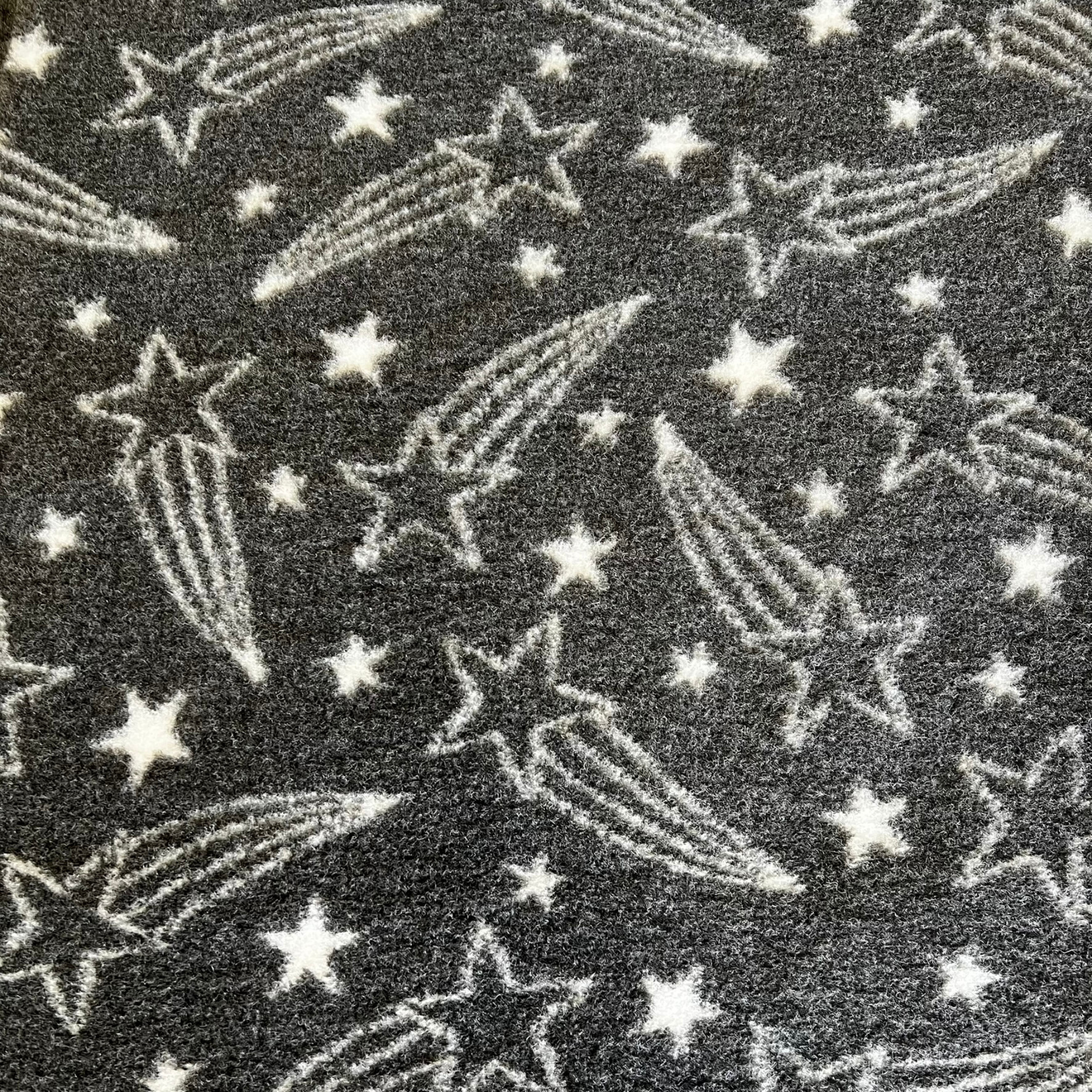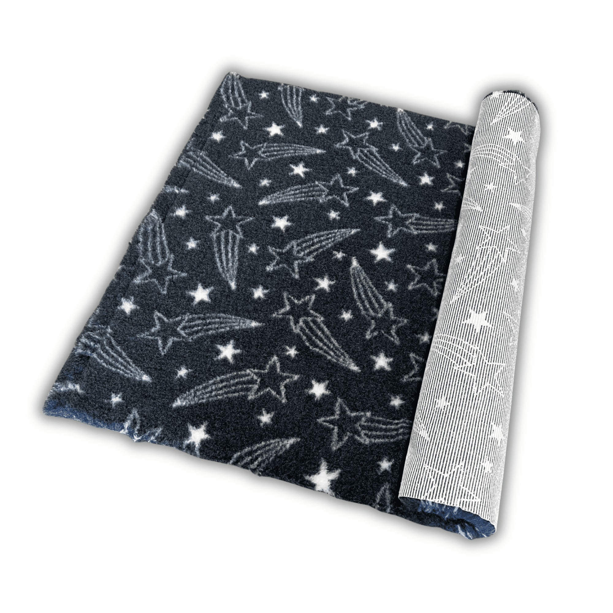 Introducing our latest bespoke premium vet bed: the Shooting Star design. Featuring a stunning shooting star display in White and a Charcoal Dark Grey background, this bed showcases a rich blend of fibres and is rubber backed.